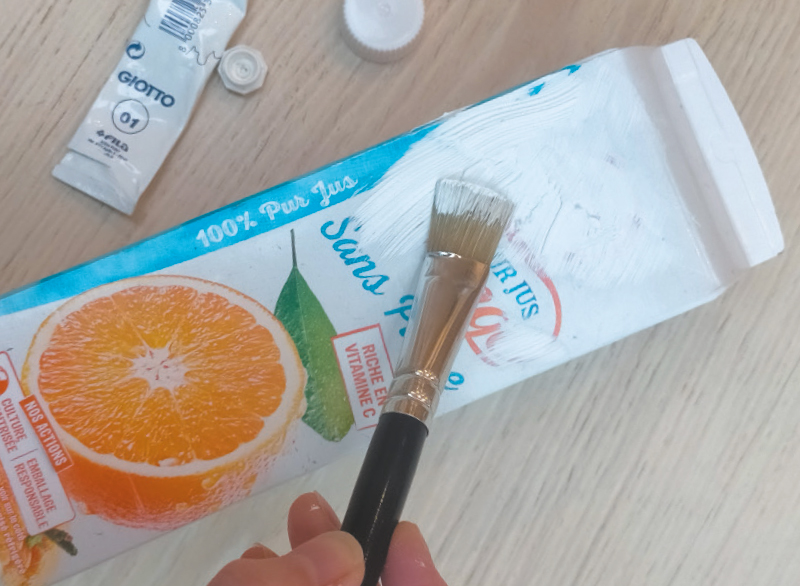 Retire le bouchon de la brique, puis peins-la de la couleur de ton choix.